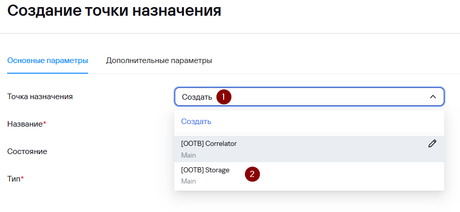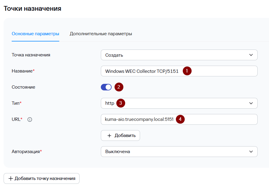 Точек назначения может быть несколько. Их можно добавить с помощью кнопки Добавить точку назначения.
