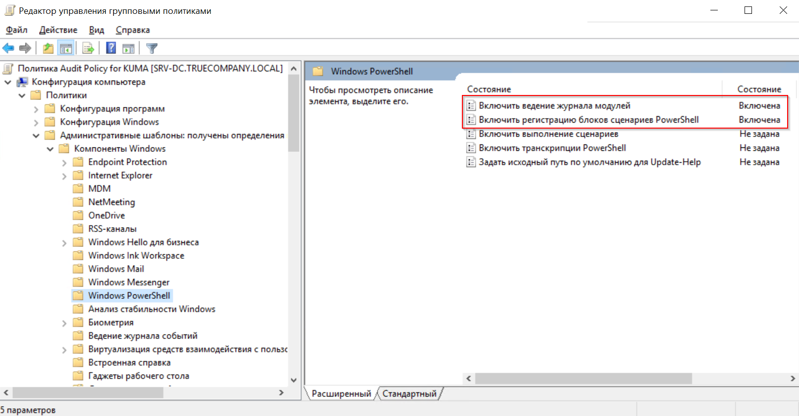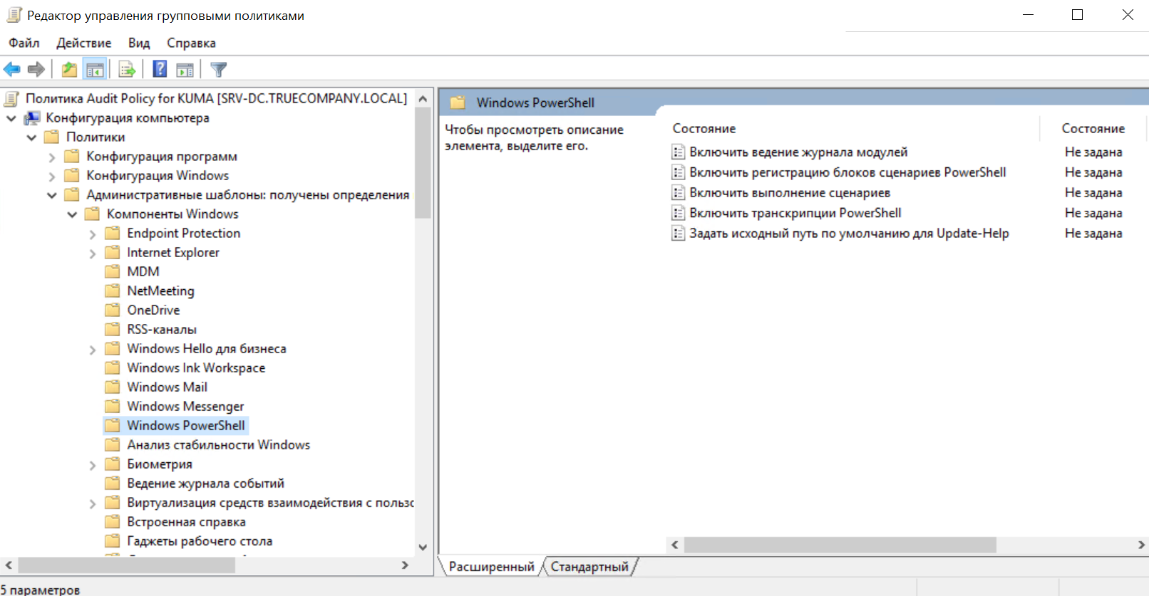 Чтобы настроить аудит событий, связанных с выполнением команд и скриптов в PowerShell на отдельной рабочей станции/сервере: