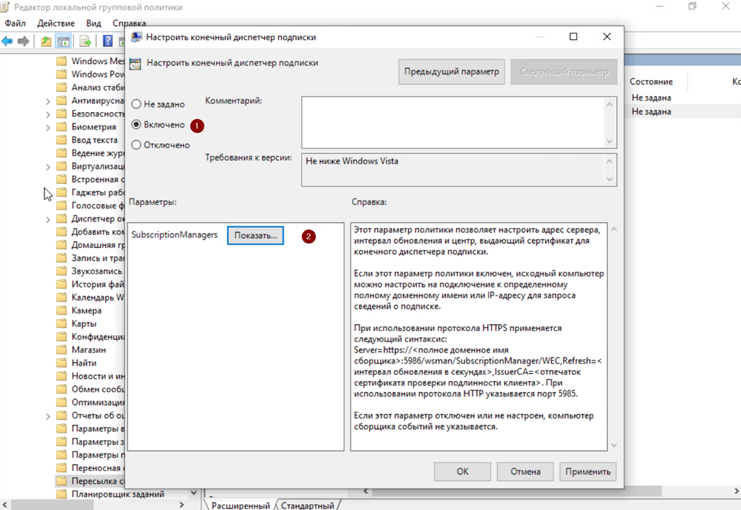 В данном примере мы рассмотрим вариант Source-initiated subscriptions (режим Push) ввиду того, что этот режим более предпочтителен из-за отсутствия необходимости настройки «прослушивания» входящих соединений службой WinRM на источниках событий.