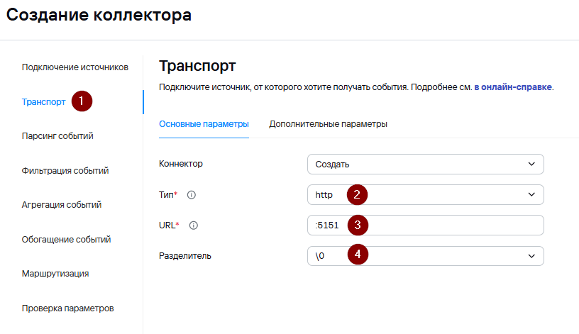 Дополнительные параметры точки назначения (например, Разделитель и режим TLS) должны совпадать с дополнительными параметрами коллектора, с которым вы хотите связать агент.