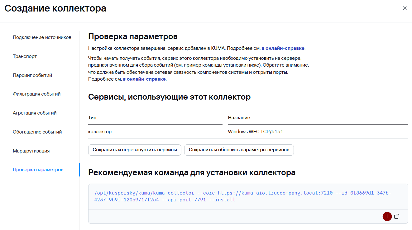 Когда ресурс агента создан, можно перейти к созданию сервиса агента в KUMA.