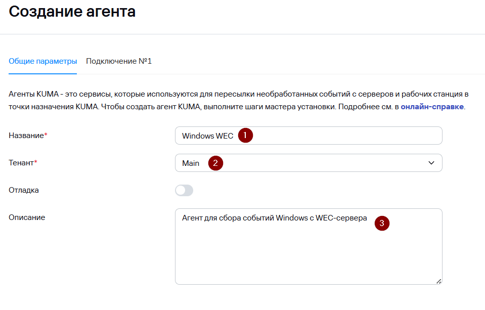Чтобы создать сервис агента в веб-интерфейсе KUMA: