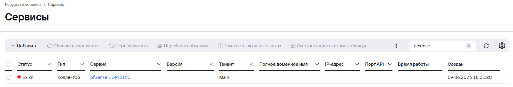 Также после выполнения вышеуказанных действий в разделе Ресурсы > Активные сервисы появится созданный сервис коллектора.