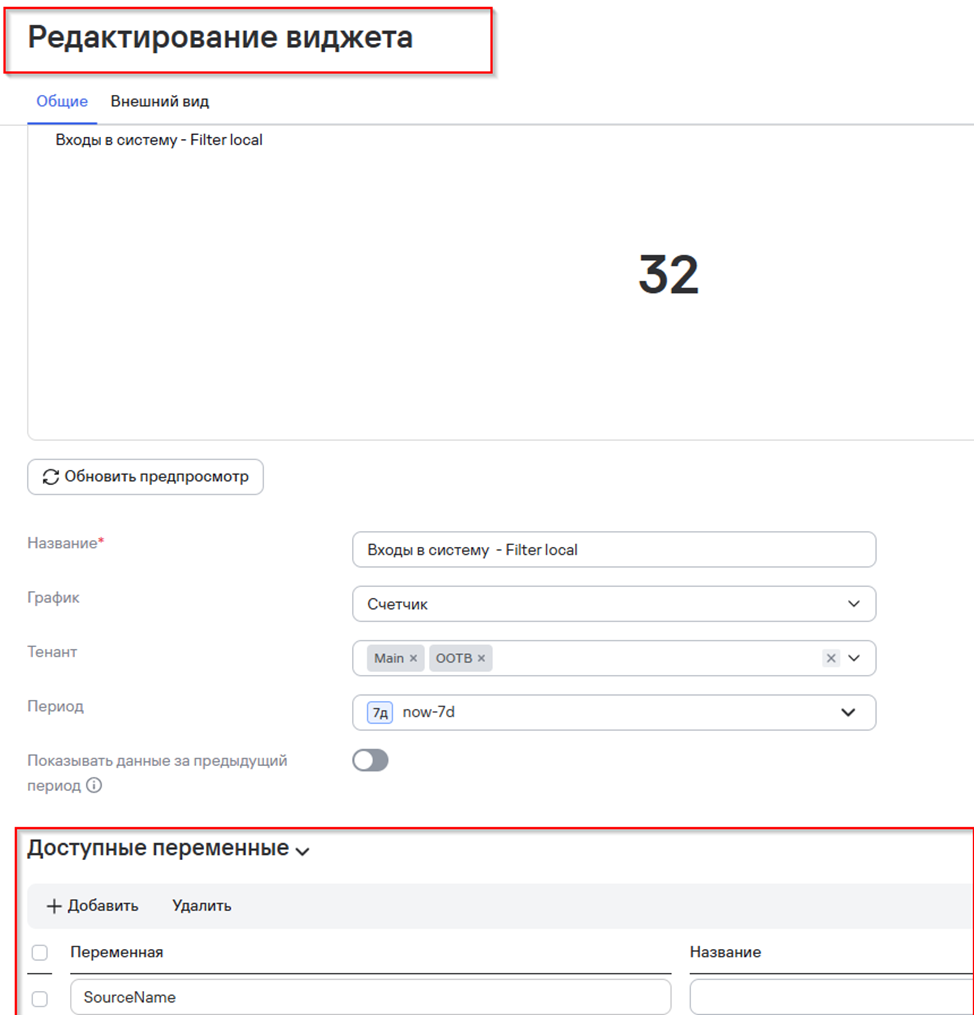 Для применения фильтра выберите параметр “Фильтровать по переменной”. Сохраните виджет и панель мониторинга.