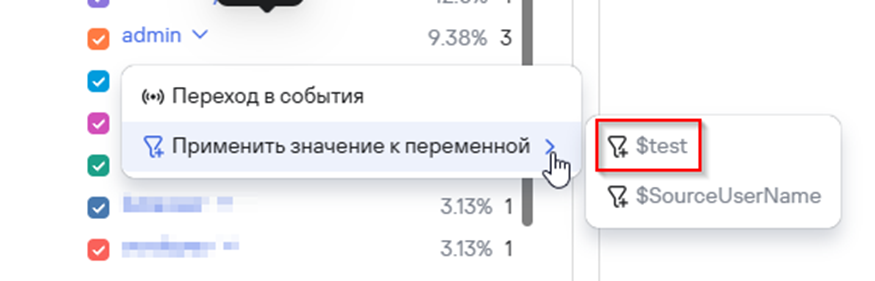 Или второй пункт, чтобы привязаться к переменной, станет test=admin