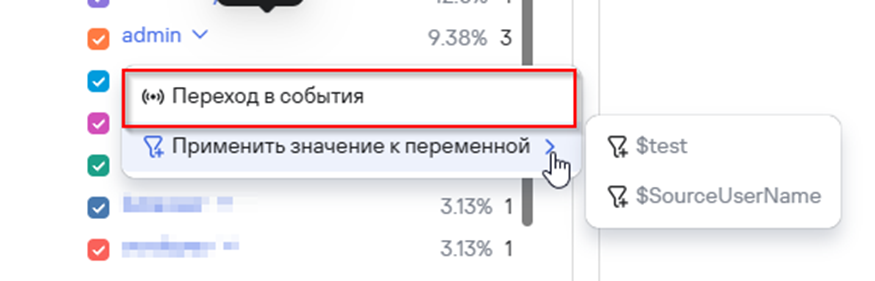 В режиме просмотра панели мониторинга нажмите на легенду/график в виджете Перейдите в события, если хотите посмотреть входы пользователя admin в систему за последнюю неделю в событиях