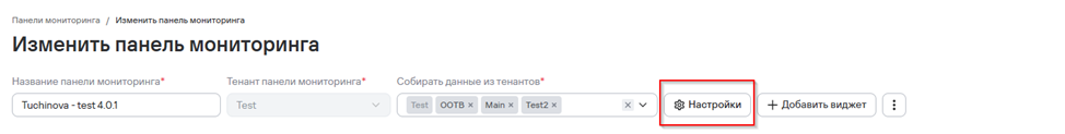 Необходимо перейти в редактирование панели мониторинга, далее “Настройки” для создания переменной