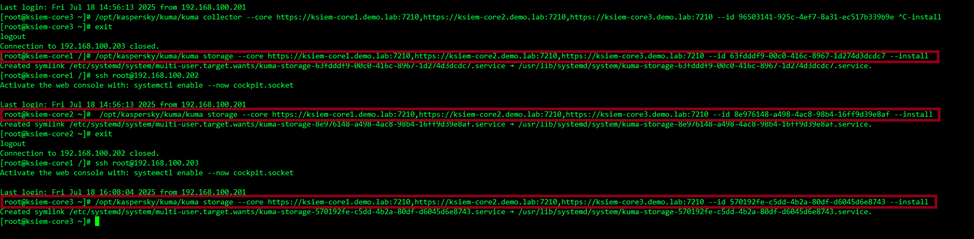 Повторите создание клиентской и серверной части сервиса Ядра KUMA для каждого хоста из группы kuma_core_peers.