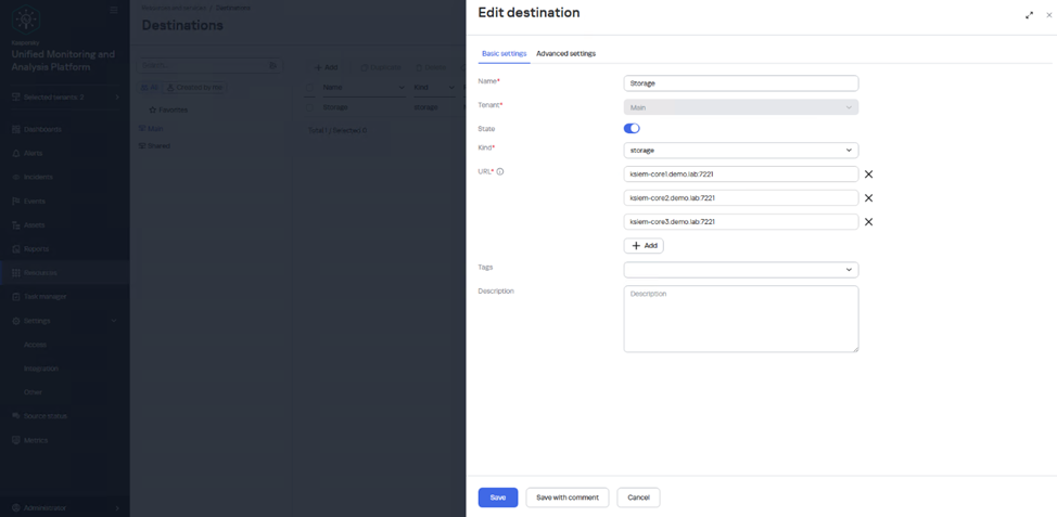 Создание клиентской части сервиса Ядра KUMA в веб-интерфейсе на контрольной машине